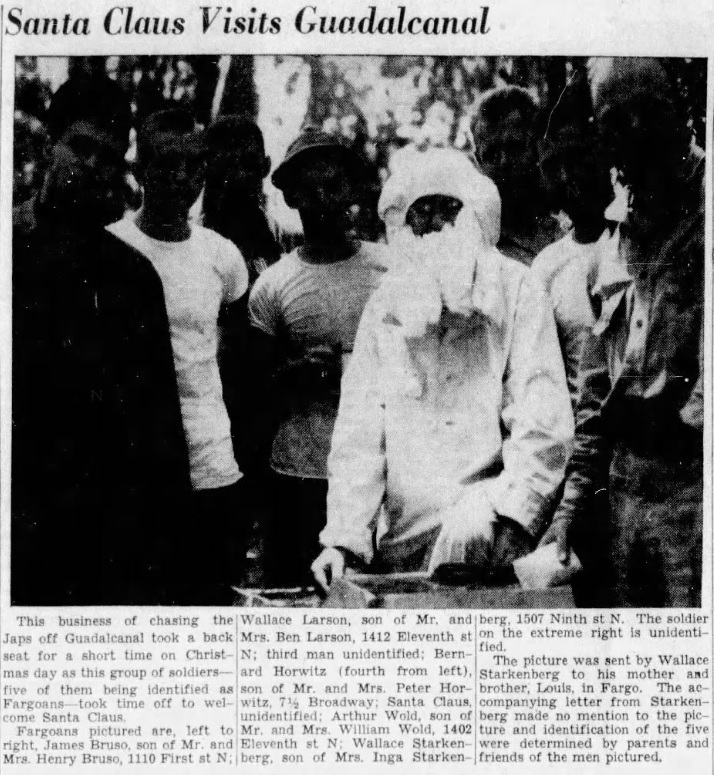 And before you prattle on about how Santa was just a soldier in cosplay, The Fargo Forum noted in a caption of a group photo with him that his identity was “unidentified”. Curious…