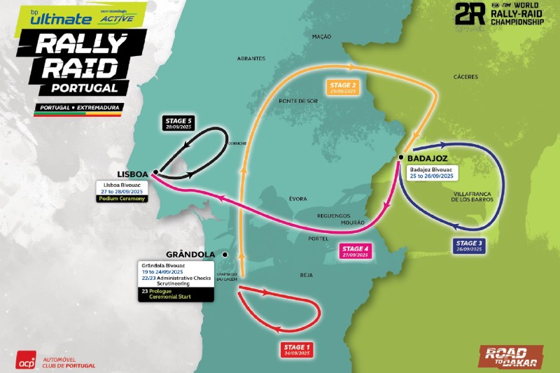 The 2025 BP Ultimate Rally-Raid will span 2,413.21 kilometers with 1,423.47 km in SS. The route begins in Santiago do Cacém, crosses into Spain and back, and finishes in Lisbon.