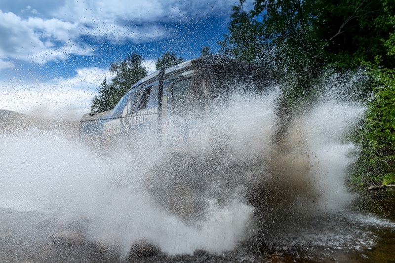 Yuri Naiman rounded out the T5 top four after battling with Almaz Akhmedov through the forest. Naiman initially let Akhmedov pass him before the latter had to stop multiple times due to overheating caused by tree branches getting stuck. Ural colleague Alexey Popov had to complete the stage without front brakes after they were damaged in the rocks; his windshield wiper also broke, meaning he “drove blindly” when going through water.