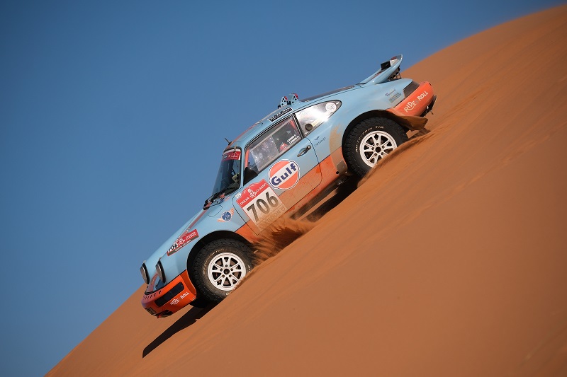 While most Classic cars simply use liveries emulating rally raiders of yore, the iconic Gulf sponsorship on Berrier’s 964 is actually legitimate backing by the oil company. Berrier, a French expat living in Dubai, was previously a perfume businessman and admirer of Steve McQueen who managed to get Gulf onboard.