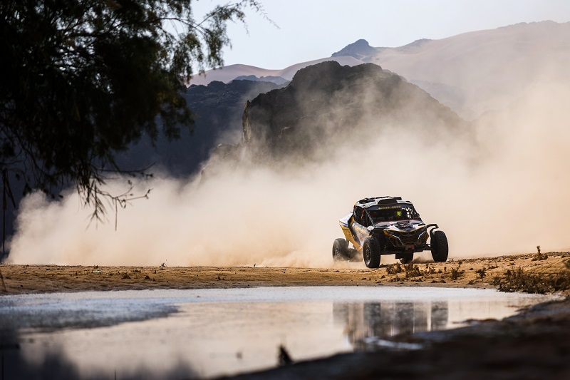 Francisco López Contardo’s chances at the SSV overall are slim after a tough start to the race, though 490 seconds of penalties doesn’t help either. On four occasions in Stage 3, he and navigator Álvaro León were busted for taking their seatbelts off before their Maverick came to a complete stop, leading to 390 seconds being added. López was also spotted with the zipper on his firesuit down, drawing a €250 fine. León made the same mistake the next day which got him another 100 seconds.