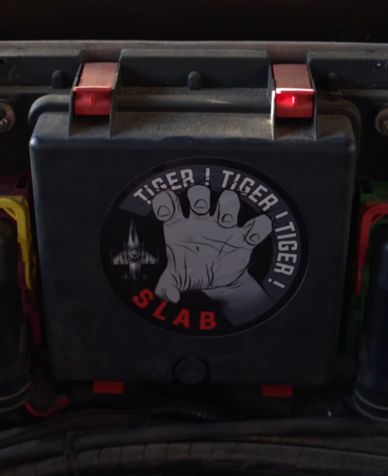 Białkowski installed a tribute decal on the door of the Bull for the Baja Poland a week after the accident. That sticker was eventually replaced with the truck’s Dakar Classic number, so they stuck a new patch inside the cockpit.